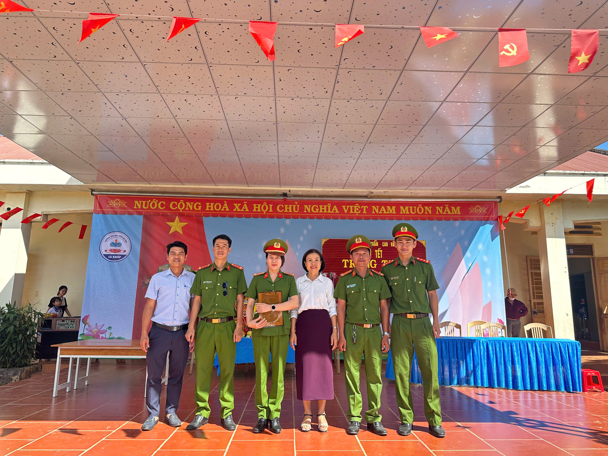 Xin cảm ơn sự đồng hành của Đảng ủy, Chỉ huy công an xã Ea Knốp, Chi hội phụ nữ và Chi đoàn Thanh niên công an xã Ea Knốp đã thăm hỏi, động viên và trao những phần quà ý nghĩa cho các em học sinh.